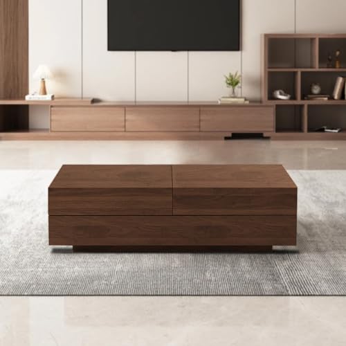LineCrispton Coffee Table for Living Room – Extendable Center Tea Table with Storage Mid-Century Walnut Low(120 * 70 * 33cm)