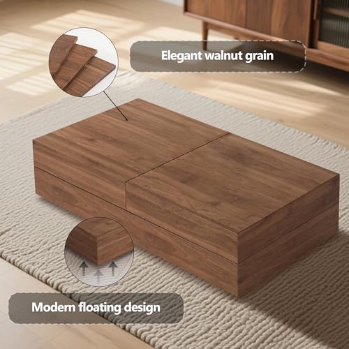 • WALNUT-TEXTURED ELEGANCE WITH PRACTICAL FEATURES: Handcrafted walnut grain adds warmth to ​mid-century coffee tables, blending artisanal charm with functional storage for keys, magazines, and more.
