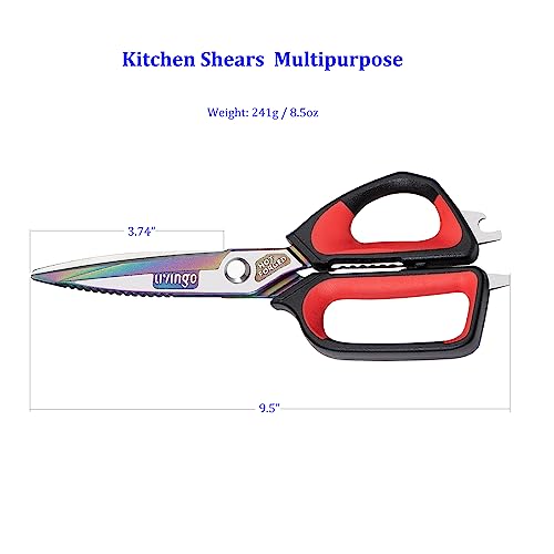 - Multi-functional Kitchen Utility Tool: nut clipper, bottle opener, kitchen scissors with serrated edges, suitable for most scenes of daily life, can be used to cut meat, chicken, poultry, fruits, fish scales, vegetables, herbs, etc. Great as a pizza and pasta cutter, and can easily be used as a nutcracker and bottle opener.