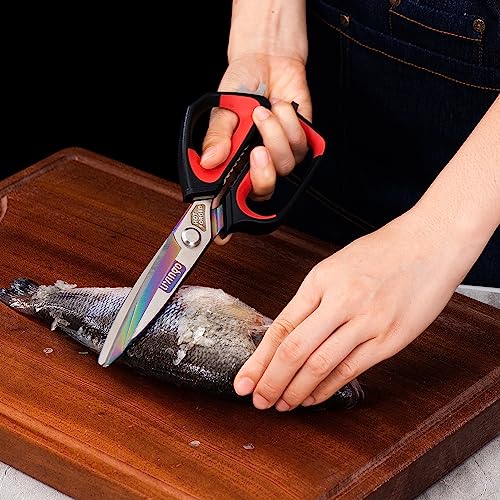 LIVINGO Heavy Duty Kitchen Scissors: Sharp Stainless Steel Titanium Coated Hot Forged Cutting Blade – Multi Purpose Food Shears for Meat Chicken Poultry Fish Bone Vegetable – Dishwasher Safe 9.5 Inch