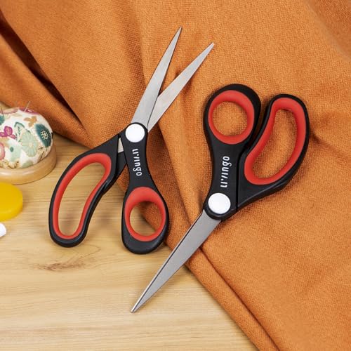 LIVINGO Universal Scissors Set – Forging Stainless Steel Soft Rubber Grip – 4 Pack of Multi-Purpose Sharp Shears: Cooking, Fabric, Paper Cutting, Crafts DIY – for Kitchen Home Office Middle School