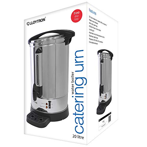 LLOYTRON 20 Litre 2500w Stainless Steel Catering Urn / Water Boiler / Anti-drip Tap / Water Level Indicator / Drip Tray / Auto Re-boil Temperature Control / Locking Lid / E1920 / Stainless Steel