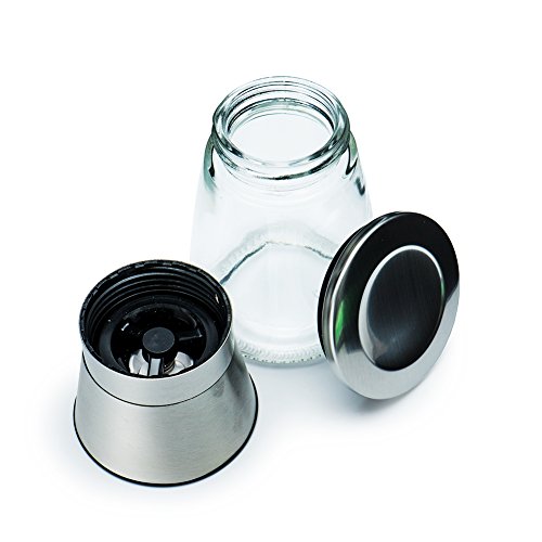 - 【EASY TO FILL】✯✯ Each individual salt and pepper grinder features a generously sized capacity (without being bulky) 8oz glass reservoir jar (180ml) and measures 15cm so you can go longer between refills. When you do need to refill, the stainless steel metal top screws off easily. The wide opening ensures a mess free refill. *Please note NO salt or peppercorns are included.