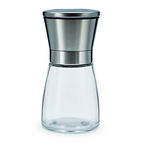 LOHAS Home Salt Pepper Mill with Glass Body Adjustable Ceramic Manual Grinder Herb Spice Crusher Suitable for Coarse Sea Salt Peppercorn, Stainless Steel Silver