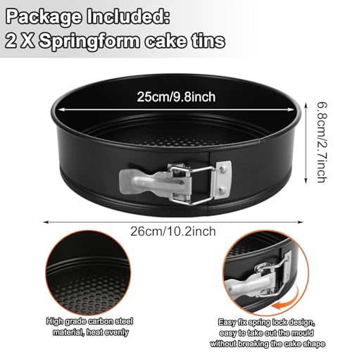 LOLYSIC 2Pcs Springform Cake Tins, 26cm 10 Inch Non Stick Cheesecake Tins with Loose Base, Carbon Steel Cake Tins Round Spring Form Pan for Cheesecakes Pie Quiches