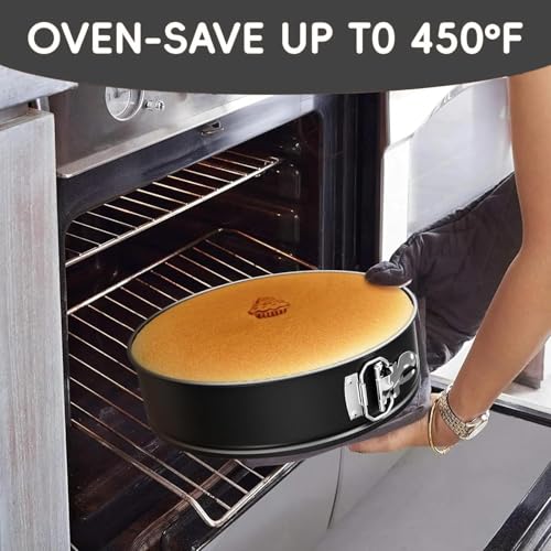 • Easy Release: Thanks to the springform and the loose bottom design, it is easy to take out your cakes without any indentations left on the 10 inch cheesecake tin.