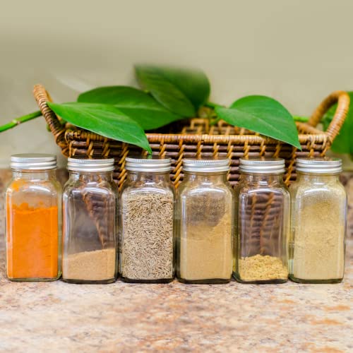LONENESSL 12PCS Glass Spice Jars with Lids, 4oz Spice Storage Jars Seasoning Container, 120ml Kitchen Square Spice Organisation Bottles with Labels, Shakers Lids, Funnel, Brush, Marker