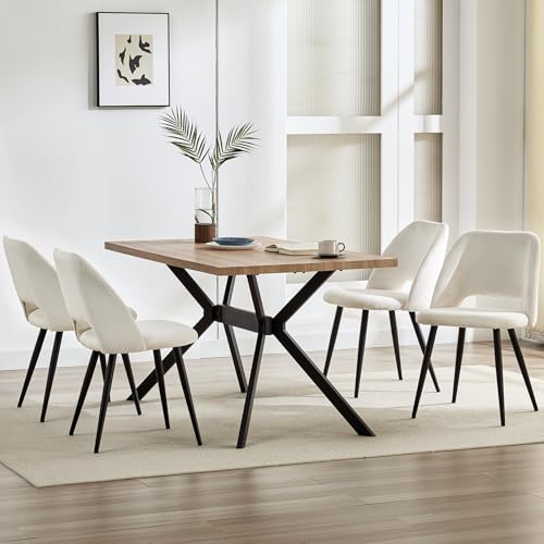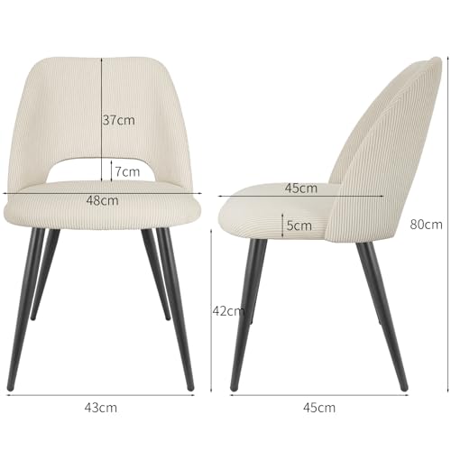 LONGTOO Set of 6 Dining Chairs,Velvet Kitchen Chair,Upholstered with Independent Legs for Dining Room,Cream