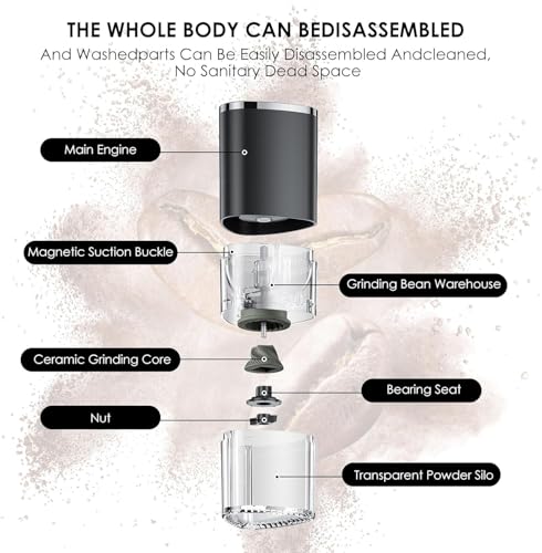 - Leak-Proof & Easy Clean by LOTTEDS: The LOTTEDS coffee grinder features a transparent, sealed powder bin (no spills!) and removable parts for quick cleaning. Includes a brush for residue-free maintenance. Plus, its compact size fits in bags—ideal for travel, camping, or home use. Grinds coffee, spices, nuts, and more!