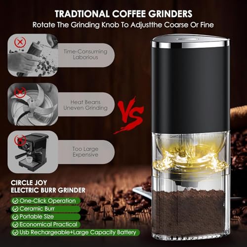 - Precision Ceramic Burr for Purer Taste: Our electric burr coffee grinder features a high-precision ceramic conical burr that grinds at low temperatures, preserving the authentic flavor and aroma of your beans—unlike metal blades that burn oils. Compact yet powerful, it’s faster than manual grinders and more portable than bulky alternatives.