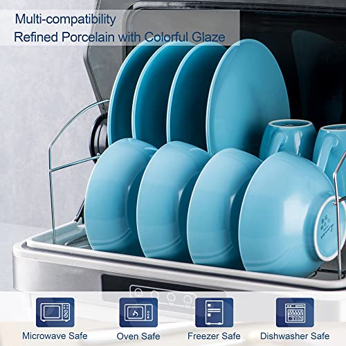 - High-quality, robust quality – made from heat-resistant and environmentally friendly porcelain, the dinner tableware is suitable for everyday use – especially optimal from breakfast to dinner. Refrigerator safe, heat resistant, microwave safe, dishwasher safe and easy to clean.
