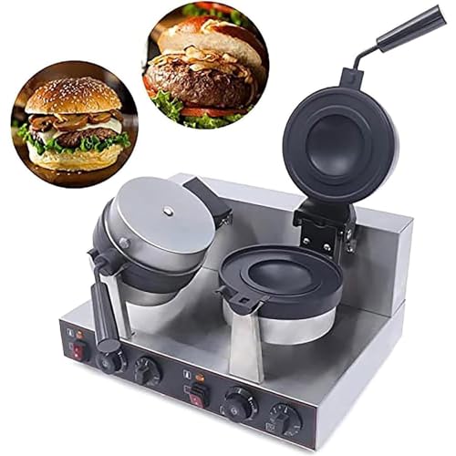 LSHFYV Commercial Burger Waffle Maker, Non-stick Electric Panini Press Burger Waffle Maker, 50-300℃ Temperature Control Double-Sided Heating 5 Minutes Timer Bubble Egg Waffles Baker Machine,B