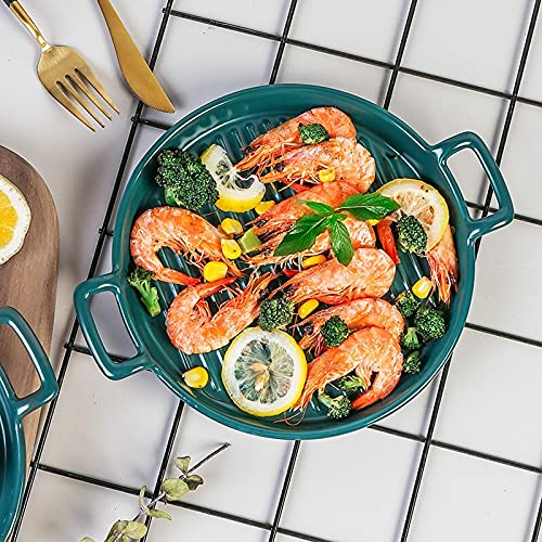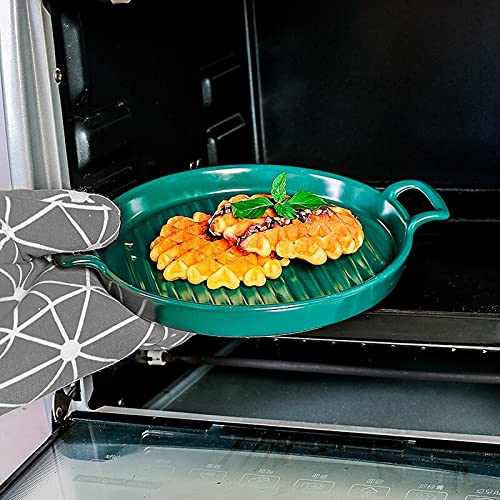 LUCBEI Porcelain Baking Dish Set, Stripe Round Au Gratin Pans, Ceramic Bakeware with Dual Handles for Kitchen and Home, Set of 2 (Green) Lasagna Pans