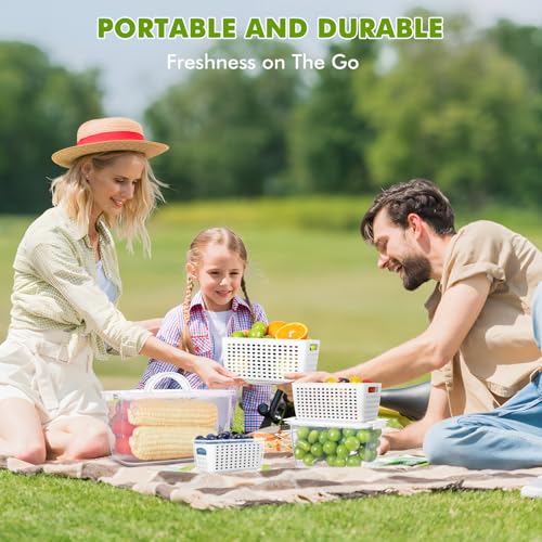 - 【Innovative Dual-Layer Design for Enhanced Freshness】Each container features a smart dual-layer system with a detachable raised filter tray. Perfect for rinsing fruits/vegetables or draining excess moisture, preventing food from soggy storage. The tray pops out effortlessly for thorough cleaning, while the inner compartment keeps ingredients fresh and organized.