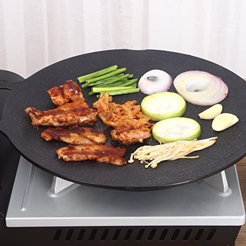 - 【Wide Applications】: This Korean round griddle can be used for induction or electric stoves, gas stoves, and hot dishes, making it ideal for daily cooking at home, as well as for camping, hiking, or outdoor barbecue parties.