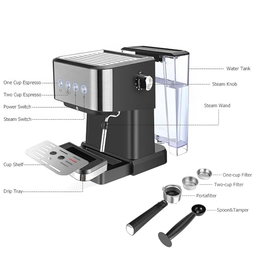 - Lwxjjer Espresso Coffee Machine, 1050W Manual Coffee Machine with 1.5L Water Tank, Milk Frother, 30-45s Fast Heating, 20 Bar Semi-Automatic Coffee Machine for Home, Office