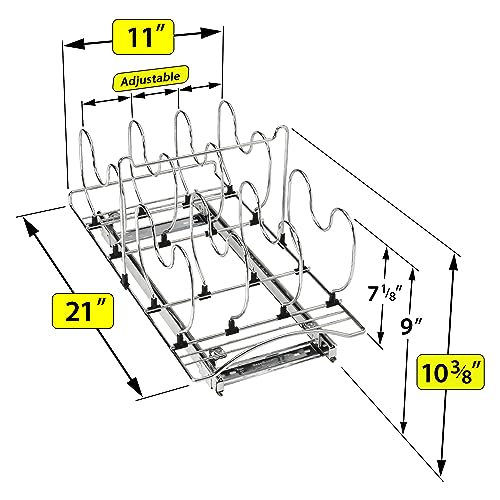 Lynk Professional® Pot and Pan Organizer for Cabinet – Pull Out Pan Organizer Rack – Slide Out Pans and Pots Lid Holder – Under Cabinet Kitchen Organization and Storage – 11" Wide x 21" Deep – Chrome