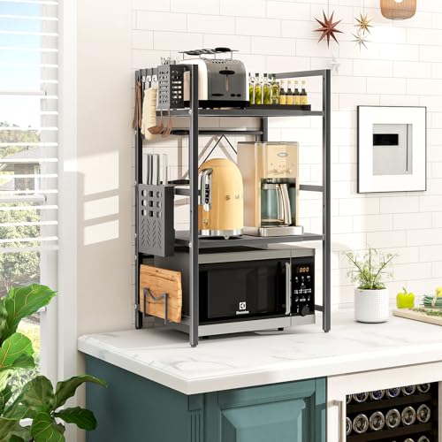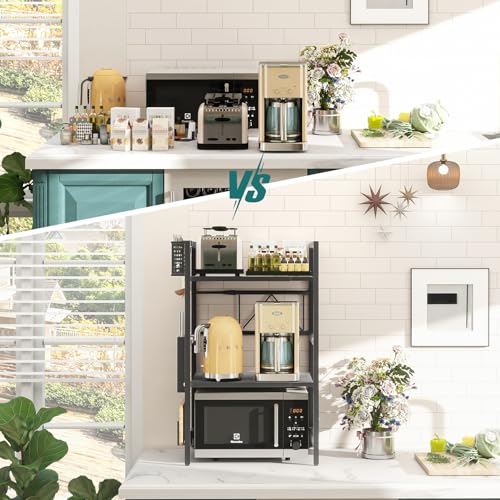 - Powerful Load-bearing Design: Constructed from thick carbon steel plate, the LZNIOZ microwave shelf stand boasts a robust structure capable of supporting various small kitchen utensils with ease