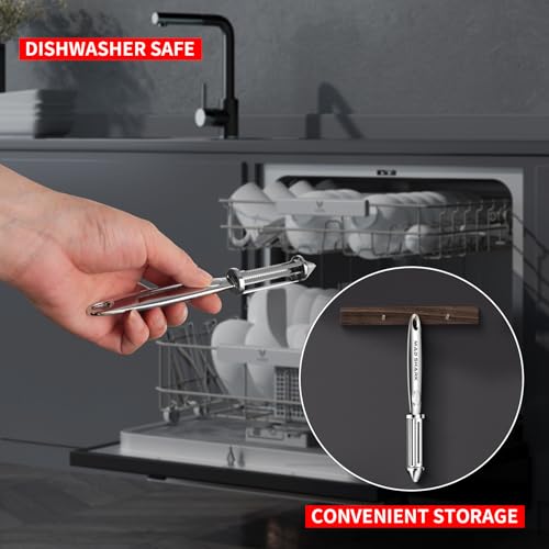 - TOP GRADE HIGH-QUALITY MATERIAL: This rust-free potato peeler features a premium 304 stainless-steel blade that stays ultra-sharp, ensuring effortless peeling every time. Built to last, this durable peeler can withstand extensive use without dulling, breaking, or discoloring, providing reliable performance for all your kitchen peeling needs