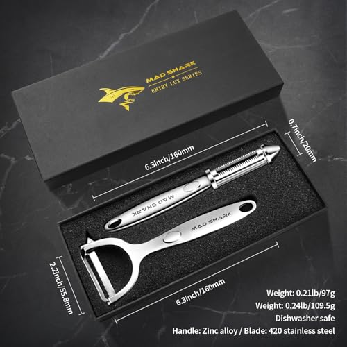 - EXCELLENT PACKAGING: Mad Shark potato peeler comes with a beautiful box instead of a simple and breakable plastic bag. You can also give it as a gift to your friends, your friends will also like this gift. If you encounter any problems, please contact with us with anytime