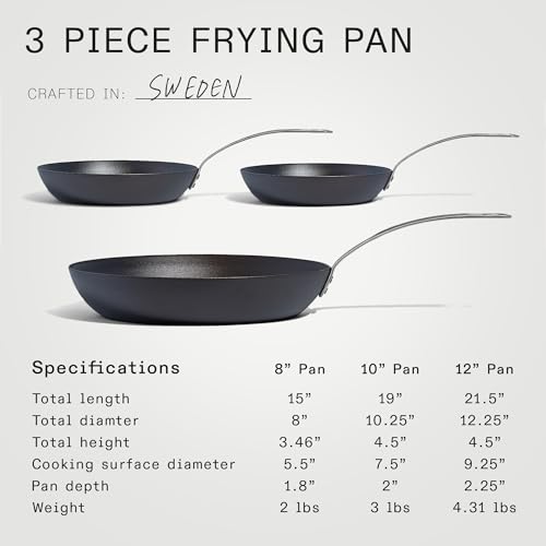 Made In Cookware – 3 Piece (Includes 8",10",12") Seasoned Blue Carbon Steel Frying Pan – (Like Cast Iron, but Better) – Professional Cookware – Crafted in Sweden – Induction Compatible