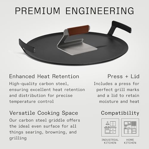 Made In Cookware – Seasoned 17" Round Carbon Steel Griddle + Grill Press – (Like Cast Iron, but Better) – Professional Cookware – Crafted in Sweden – Induction Compatible