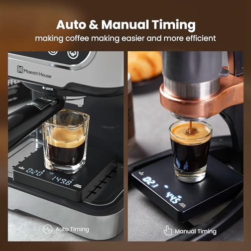 - 【Minimalist Design & Quality Materials】Maestri House digital coffee scale is made of high heat-resistant ABS with an invisible LED display and hidden touch control keys. The surface without gaps is more elegant, waterproof, and easy to clean. It is waterproof, non-slip, scratch-resistant, and heat-insulating, with removable silicone pads to protect the surface