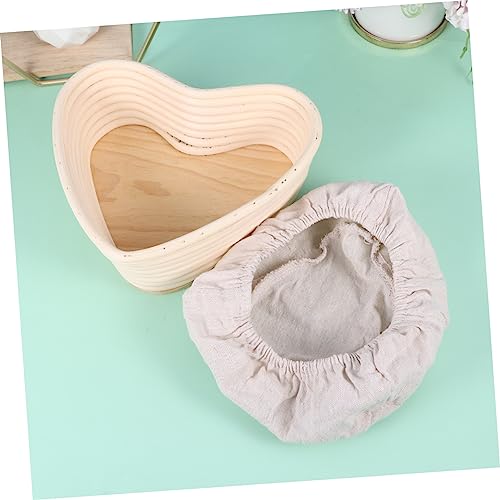 MAGICLULU 1pc Heart Shape Rattan Proofing Basket with Cloth Cover Natural Vine Baking Tool for Dough Artisan Bread Making Khaki for Amateur Professional Bakers