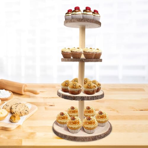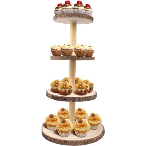 MagiDeal 4 Tiered Wood Cupcake Stand Rustic Wood Cake Stand Dessert Display Stand for Party Presenting Wedding Centerpiece