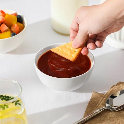 - 【HEALTHY AND DURABLE】 Fired by high temperature, MALACASA small ivory white bowls are sturdy and safe to use in daily life. Resistant porcelain with a raised non-slip and thickened bottom. Robust enough to withstand the rigors of daily life. Also the bowls can be used for food storage in the refrigerator, or used to heat food in your microwave.