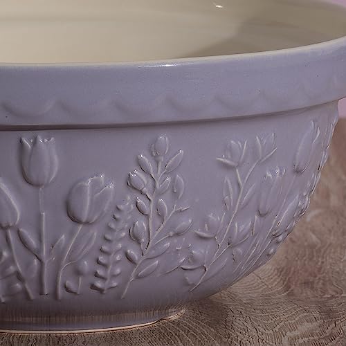 Mason Cash in The Meadow Mixing Bowl 24cm | 2 Litre Earthenware Bowl with Embossed Floral Design – Ideal for Dough, Pastry, Cake & Cookie Mixes | Dishwasher Safe