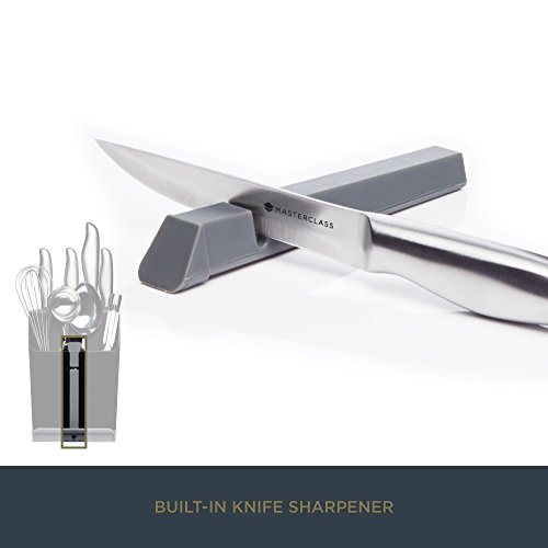 MasterClass Smart Space All-in-1 Knife Block and Utensil Holder with Ceramic Knife Sharpener, 15.5 x 14.5 x 20.5 cm (6'' x 5.5'' x 8'') – Black / Grey