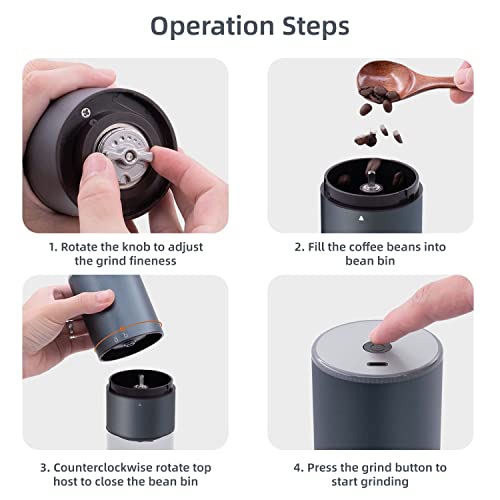 - Efficient Grinding: The Portable Electric Coffee Grinder boasts a 420 stainless steel grinding core, engineered for durability and precision. It adeptly grinds coffee beans to your desired consistency, with a stepless adjustment feature allowing you to control the thickness of your grind. This versatility extends beyond coffee, making it perfect for grinding spices, nuts, and more.