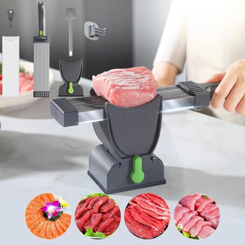 - 【ENHANCE YOUR COOKING SKILLS】Master the art of slicing with our meat , featuring an adjustable thickness function to create the cut for different types of meat. From thin to thick slices, enjoy a and effortless slicing experience at home