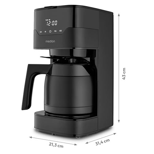MEDION Coffee machine with thermos flask and timer, 900 watts power, 1.1 litre capacity for 8 cups