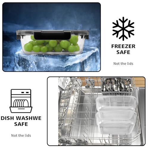 - ❤【DISHWASHER SAFE, EASY TO CLEAN】Glass containers won’t absorb stains or smells, Containers and Removable silicone seals are dishwasher safe, making cleaning them a breeze. (Please note Plastic lids are Top-Rack Dishwasher Safe.)