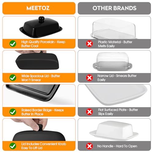 MEETOZ Ceramic Butter Dish with Lid, Large Rectangular Butter Dish, Vintage French Butter Holder for Counter, Kitchen Deco & Butter Storage (Black, Square)