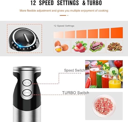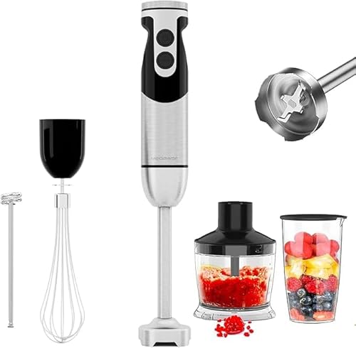 MegaWise Blender Handheld 12-Speed Stainless Steel Electric Hand Blender, 5 in 1 Immersion Handheld Blender,Titanium Blades Hand Blender, Milk Frother Wand,with 600ml Whisk Beaker and Chopper (black)