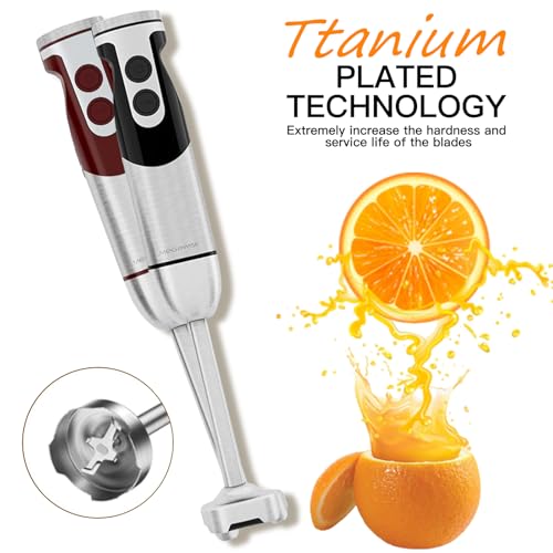 MegaWise Pro 5-in-1 Immersion Hand Blender Titanium Reinforced Powerful Motor with 80% Sharper Blades, 12 Speed Corded Blender, Including 500ml Chopper, Tumbler