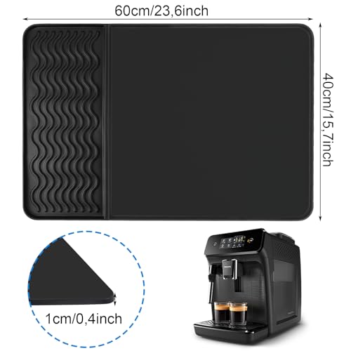 MEIDIV 2 Pack Coffee Machine Mat, 60x40CM Large Coffee Mat Under Coffee Machines, Silicone Coffee Machine Tray, Coffee Maker Mat with Raised Edges, Silicone Dish Drying Mat Coffee Bar Mat