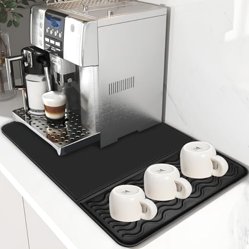- Easy to Use: The coffee mat is designed with a high raised edge to hold a large amount of water, preventing leaks or spills, and effectively protects the coffee bar or kitchen countertop from stains and countertop damage.