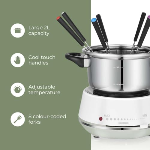 - SPACIOUS 2L POT: Ideal for gathering family and friends, perfect for cooking meat, fish, vegetables, cheese, or chocolate for hours of cosy enjoyment.