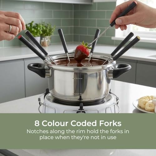 - INCLUDES 8 COLOURFUL FORKS & NON-SLIP FEET: Ensures stability of forks, providing a safe and mess-free experience while keeping the pot secure on any surface.