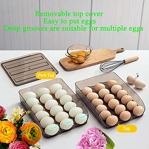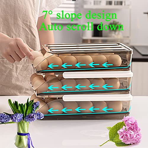 memeyou Automatic Scrolling Egg Rack Refrigerator Plastic Stackable Reusable Egg Container Clear Egg Box with Lid Egg Carrier Basket for Eggs (3 Layers)