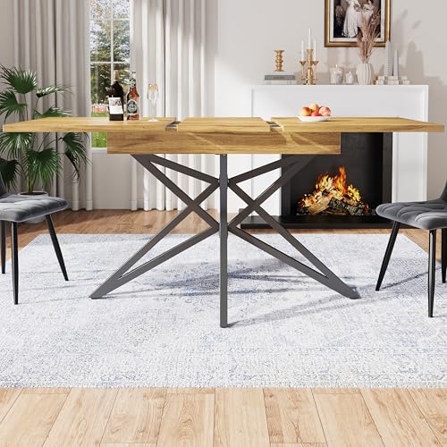 Merax Extendable Dining table 120-160×80×66.1cm, Space-Saving Kitchen Table, elegant modern wood walnut grain finish design,star-shaped table legs, for 4-8 People, for Dining Room,Living Room,Kitchen