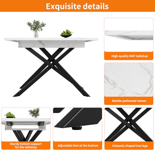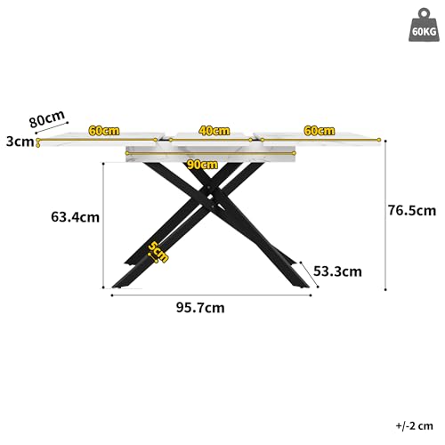 Merax Extendable Dining table 120-160×80×76.5cm, white Space-Saving Kitchen Table, elegant modern Marble Effect design, for 4-8 People, for Dining Room,Living Room,Kitchen