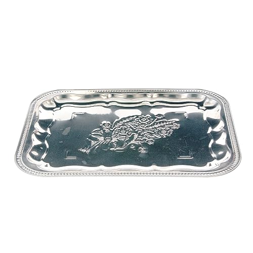 - An elegant tray perfect for serving food. Made out of lightweight metal this serving tray featuring intricate embossed floral centre and textured edge detail, to give you a tool that is perfect for serving a variety of appetizers. Perfect for serving canapes, appetizers, platters, sizzlers, starters and more!
