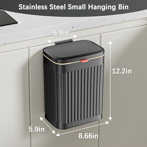 MICHIHOMIE Stainless Steel Hanging Kitchen Bin with Lid, 8L Food Waste Caddy with Detachable Inner Bucket, Rubbish Compost Bin Wall Mounted for Under Sink, Cupboard Door, Cabinet, Motorhome