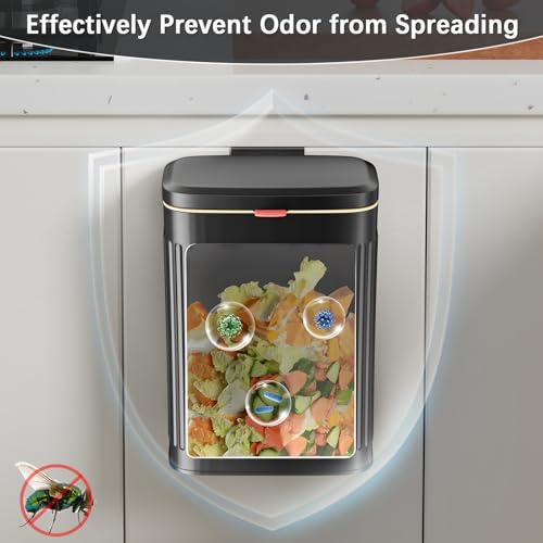 - Versatile Mounting Options (Hang, Stick, Stand): Features hooks, adhesive pads, and a freestanding base. Easily hang it under a cabinet or on a door, stick it to a flat surface, or place it on your countertop for convenient, back-saving waste disposal while cooking.