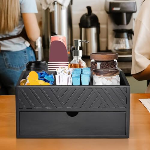 - Drawer-Style Convenience: Featuring a drawer-style design with 5 spacious compartments, it provides flexible organization for coffee items and stackable cup fit, optimizing your coffee station storage effortlessly